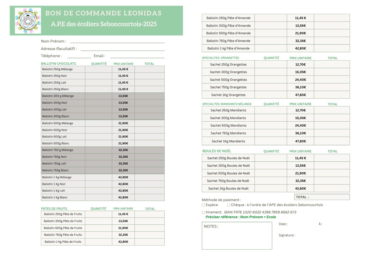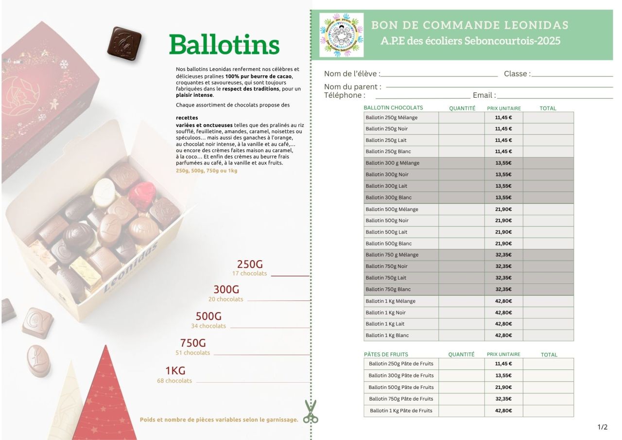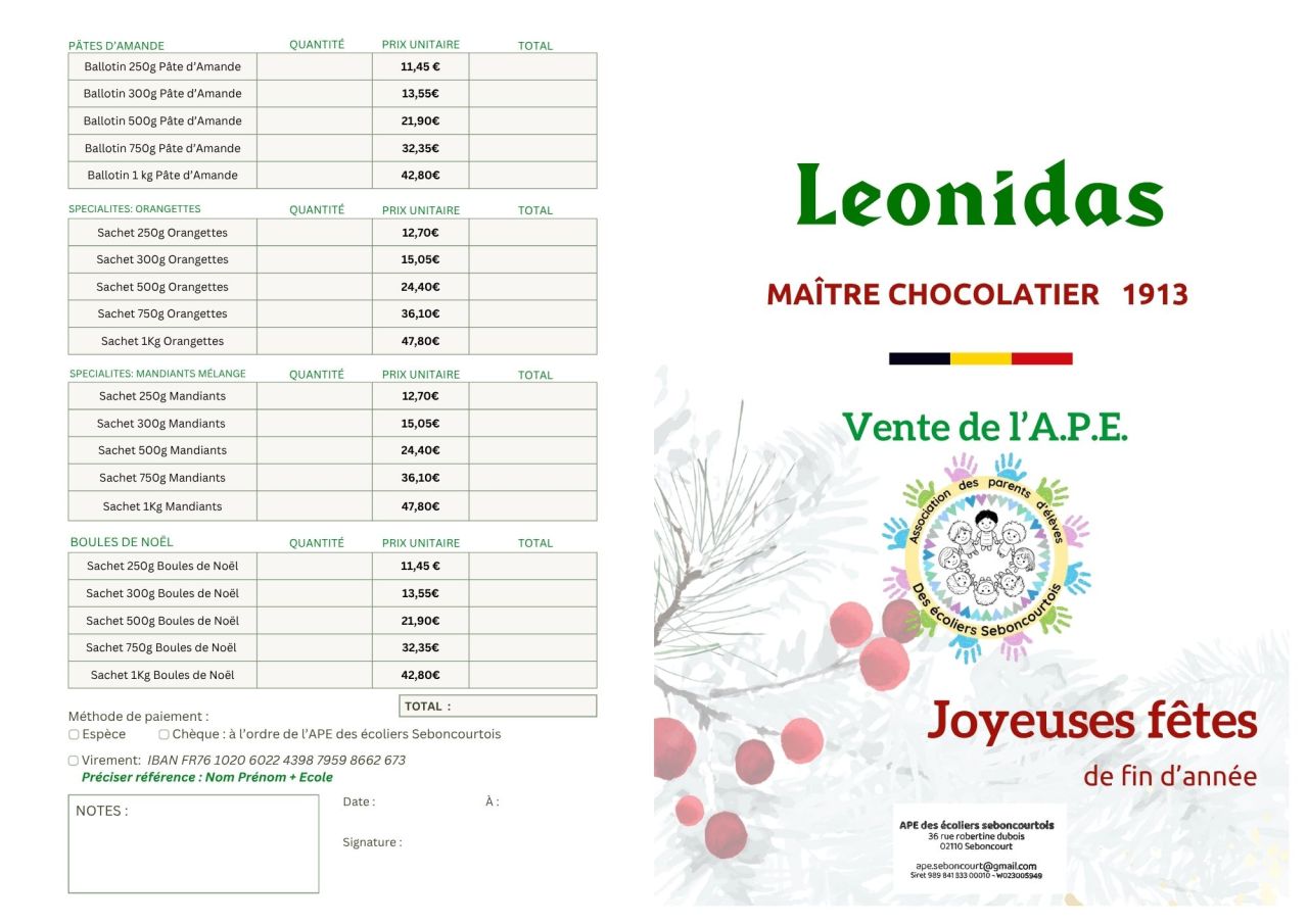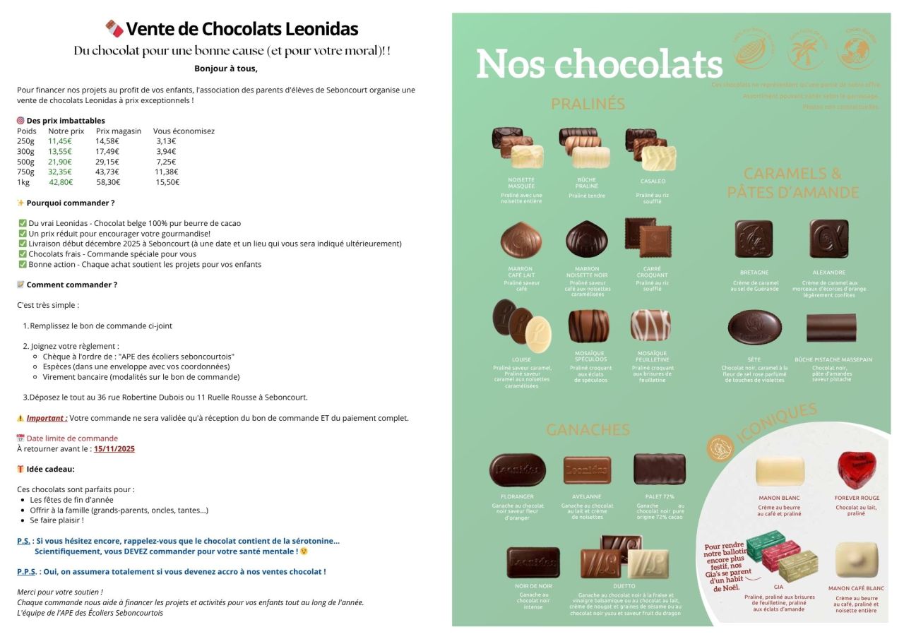 L’association de parents d’élèves vous propose une Vente de chocolats et gourmandises LEONIDAS !